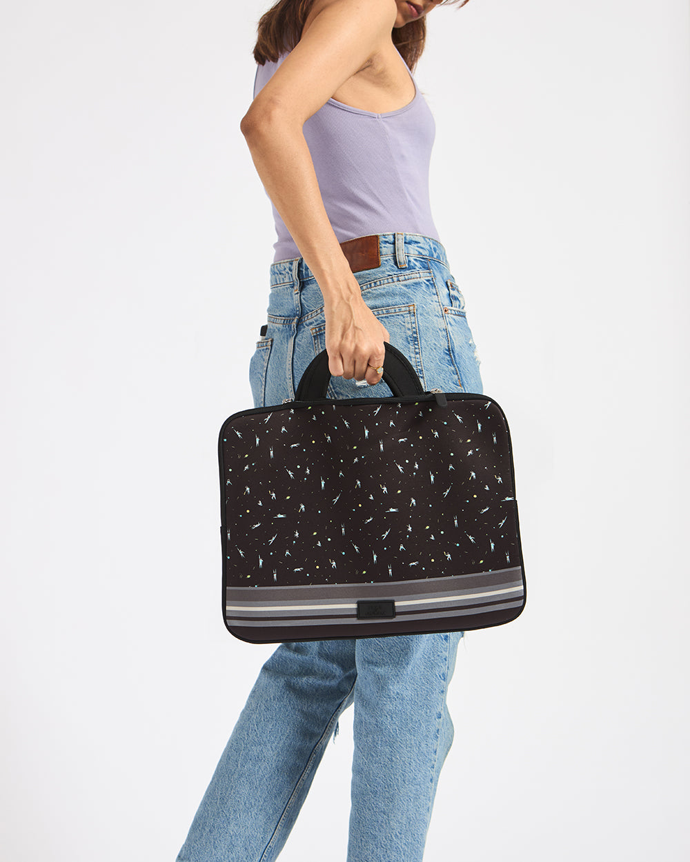 Give your laptop a coat of novelty and fun with this vibrant ‘Milky Way Laptop Sleeve’ from Chumbak. Breathable and wrinkle-free, this extremely functional laptop sleeve has compartmentalized storage space to accommodate laptops upto 13 inches while keeping it safe and scratch-free. It is designed with soft-microfiber layering with foldable handles and improved & rubberized zippers. These feature original Chumbak designs and are environment friendly.