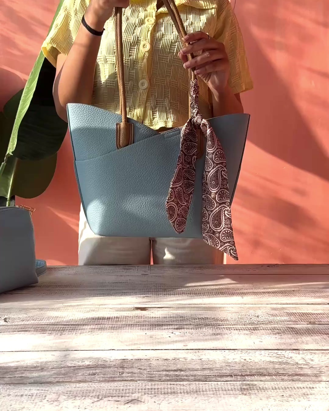 Skies Tote with Shoulder Strap & Scarf |Powder Blue