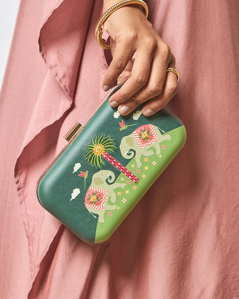 This edition adds a touch of regal detailing to an urban classic featuring majestic tusker motifs from the royal palaces of India.